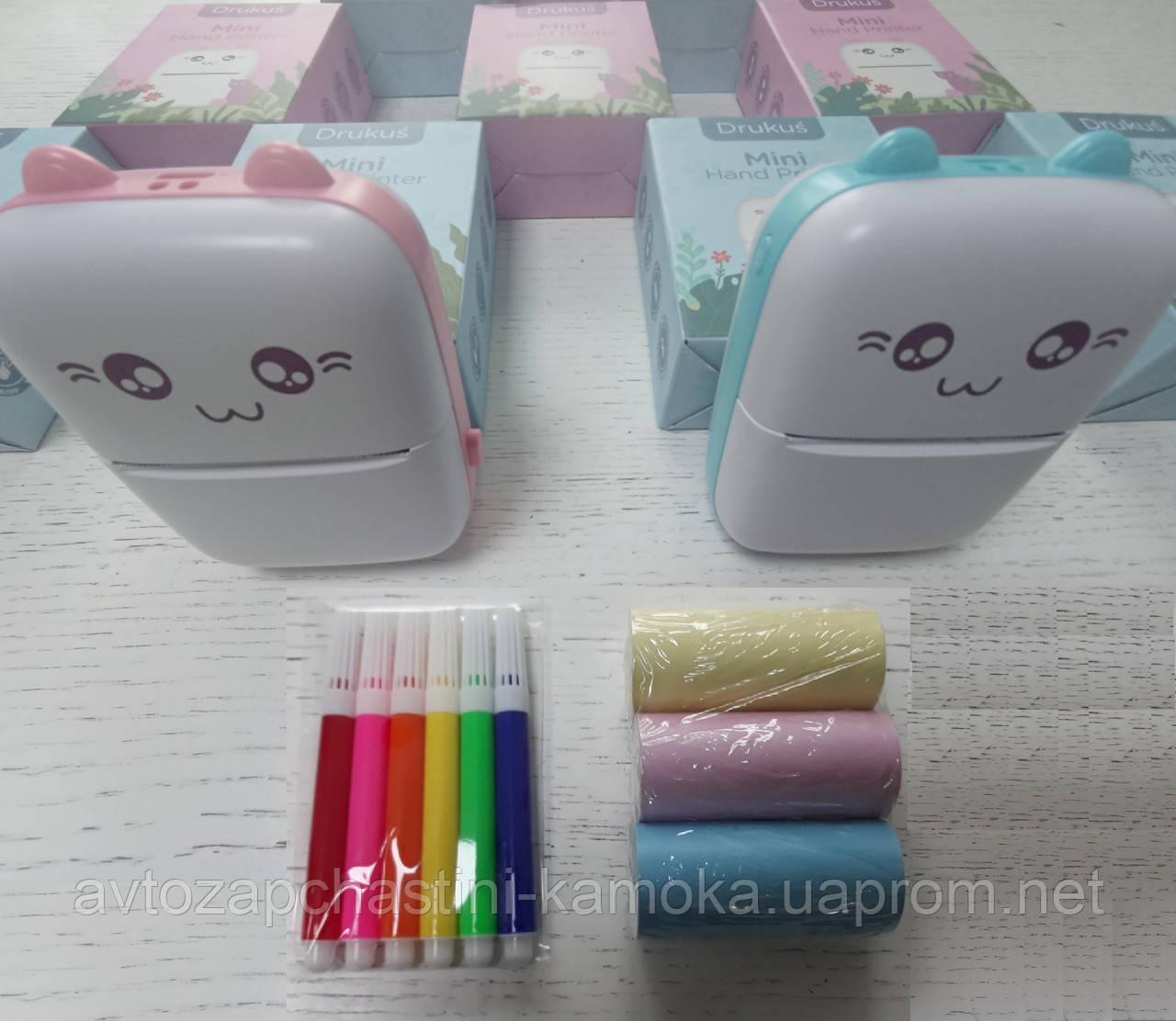 Термопринтер котик,міні принтер,принтер для дітей плюс кольоровий папір і фломастери